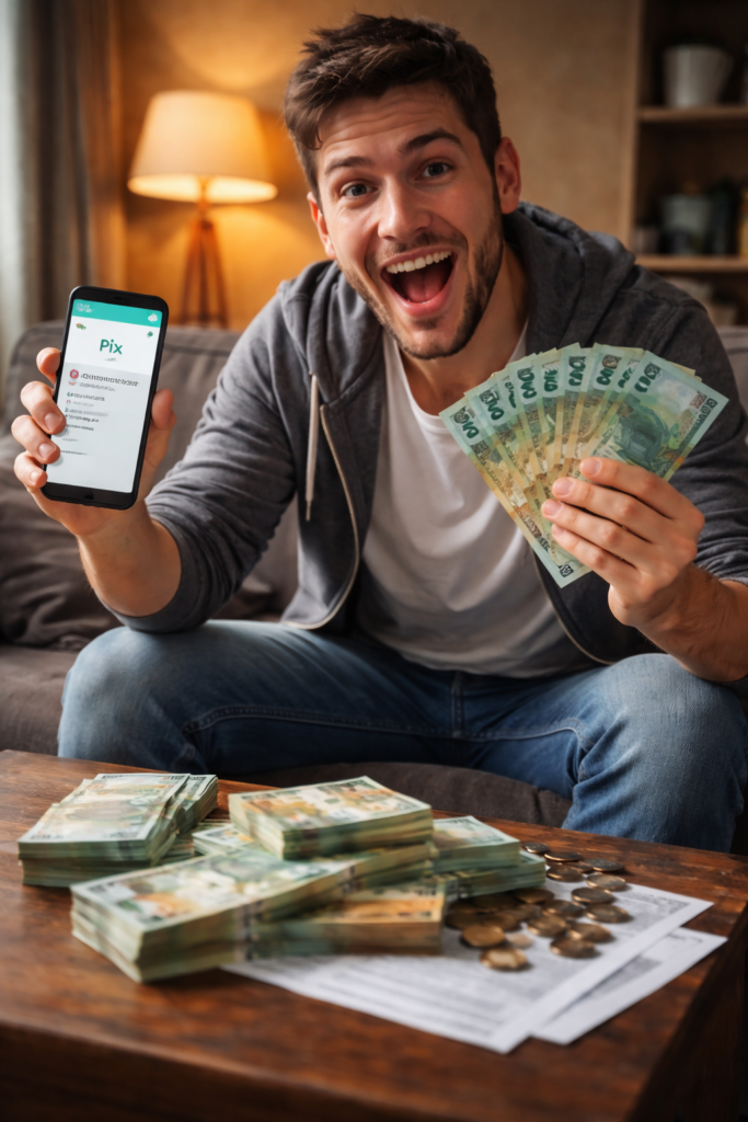 abre o saldo… e vê que tem dinheiro ali.